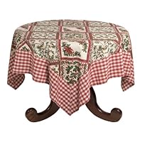 I was happy with this tablecloth when it arrived. It is exactly as pictured and the fabric is what I had hoped for. It's not a slippery synthetic as many tablecloths are but this one is heavy cotton and nicely made. The only reason I'm not giving 5 stars is the price it cost more than I had been hoping to spend two weeks before Christmas.