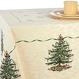 I have Spode Christmas dishes and needed the tablecloth. Was happy to find it through Amazon. I love decorating for Christmas and helped complete my look.Thought this tablecloth was really pretty and well made. I would recommend this tablecloth to anyone wanting a festive table during the month of December. It goes well with my Spode China but would look great with bisque, red, green or gold plates/chargers. Received the item in a few days after ordering. Feel lucky to have it after searching at numerous department stores who didn't carry the size I needed.