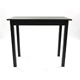 This is a pretty sturdy, massive (and surprisingly heavy) table. It's made from solid wood (here goes another beautiful tree) and painted white. It's pretty tall (as dimensions show). Also on the edges the paint is artificially worn out to give it a slightly "rustic" appearance. The wood underneath is dark, like mahogany. Overall, I'm pretty happy with it, but 2 things are keeping me from giving it 5 stars:1) I think the legs are too long not to put some additional supports on the sides. I took care of that pretty quick and now it's much more stable (I've been wondering if my floor is slightly uneven, too); and,
