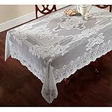 I was pleasantly surprised by the nice appearance of this very inexpensive tablecloth. It washed great, too. On the down side it is a bit flimsy, but for the money only to be expected.This is a lovely, delicate, white lace tablecloth. It's very pretty. I have an all-white dining room, with lots of crystal. This cloth looks beautiful on the white table.